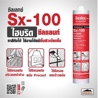 ซีลเล็กซ์ Sx-100 เป็น ไฮบริด ซิลิโคน คุณภาพสูง ผลิตภายใต้เทคโนโลยีของ Hybrid จากญี่ปุ่น เป็นผลิตภัณฑ์ที่เป็นมิตรต่อสิ่งแวดล้อมและปลอดภัยต่อผู้ใช้ ซึ่งมีความทนทานต่อการเปลี่ยนแปลงจากสภาพอากาศสูง, ทนทานต่อรังสีอัลตร้าไวโอเล็ต (UV), คราบสกปรก และยังสามารถทาสีบนพื้นผิวของยาแนวได้